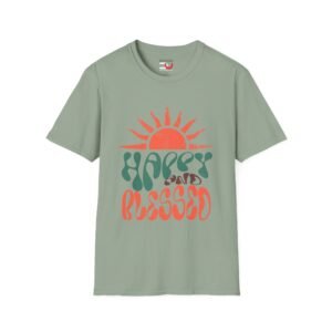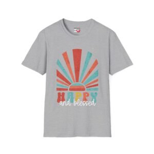 Happy and Blessed T-Shirt — Retro Sunrise Graphic Tee