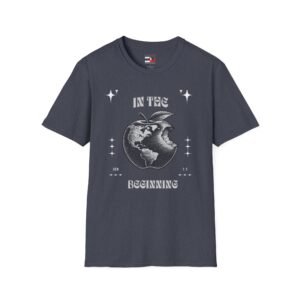 “In the beginning God created the heavens and the earth” A drop the mic Bible verse on an extra cozy 100% ring-spun cotton t-shirt