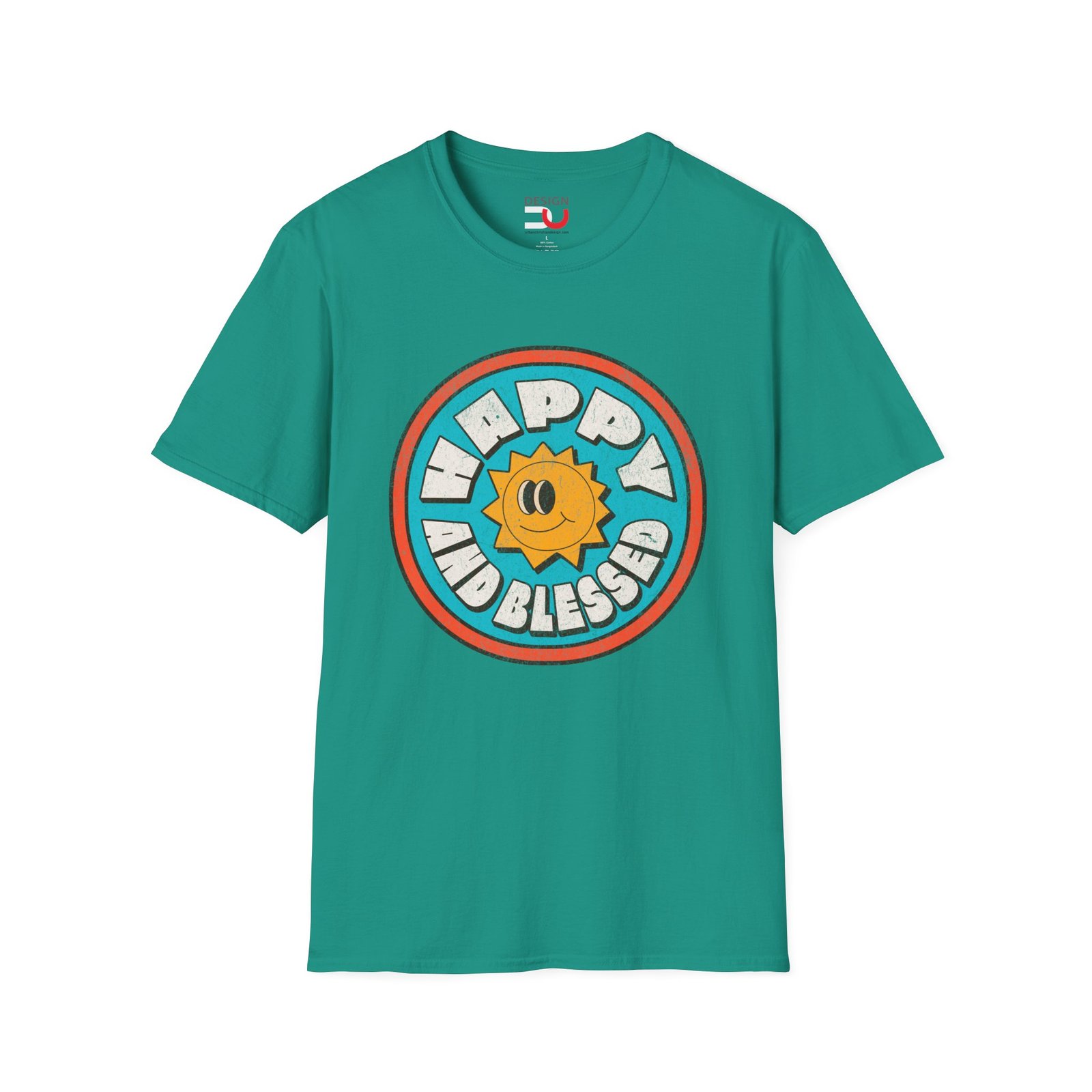 Happy and Blessed Sun Graphic T-Shirt — Retro Positive Vibe Tee