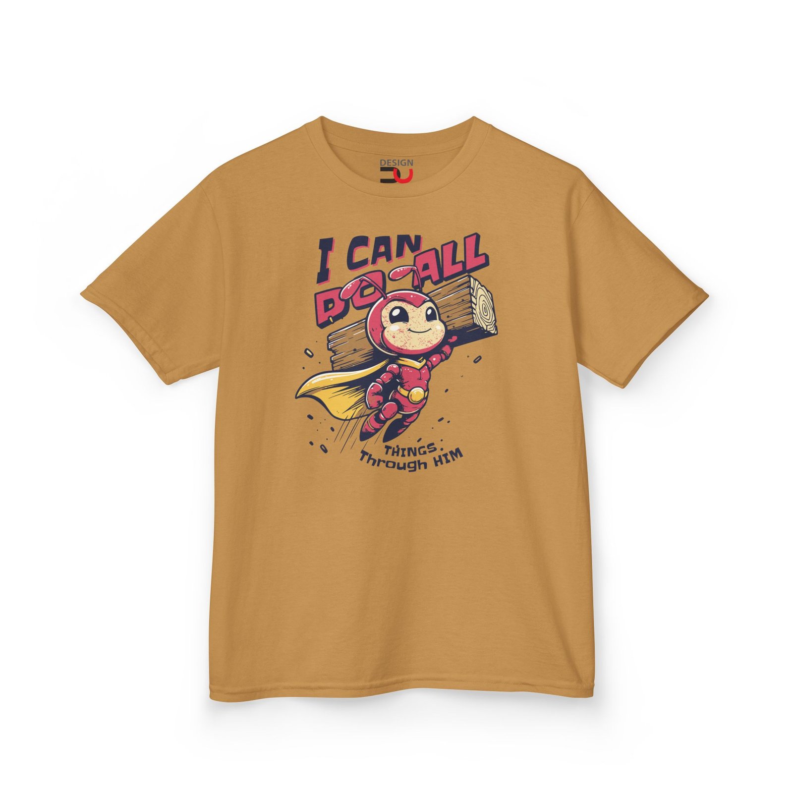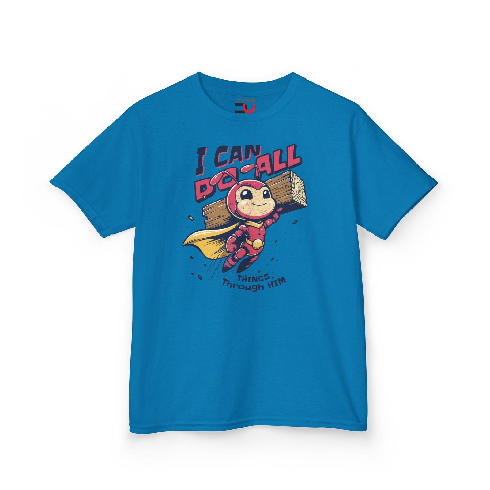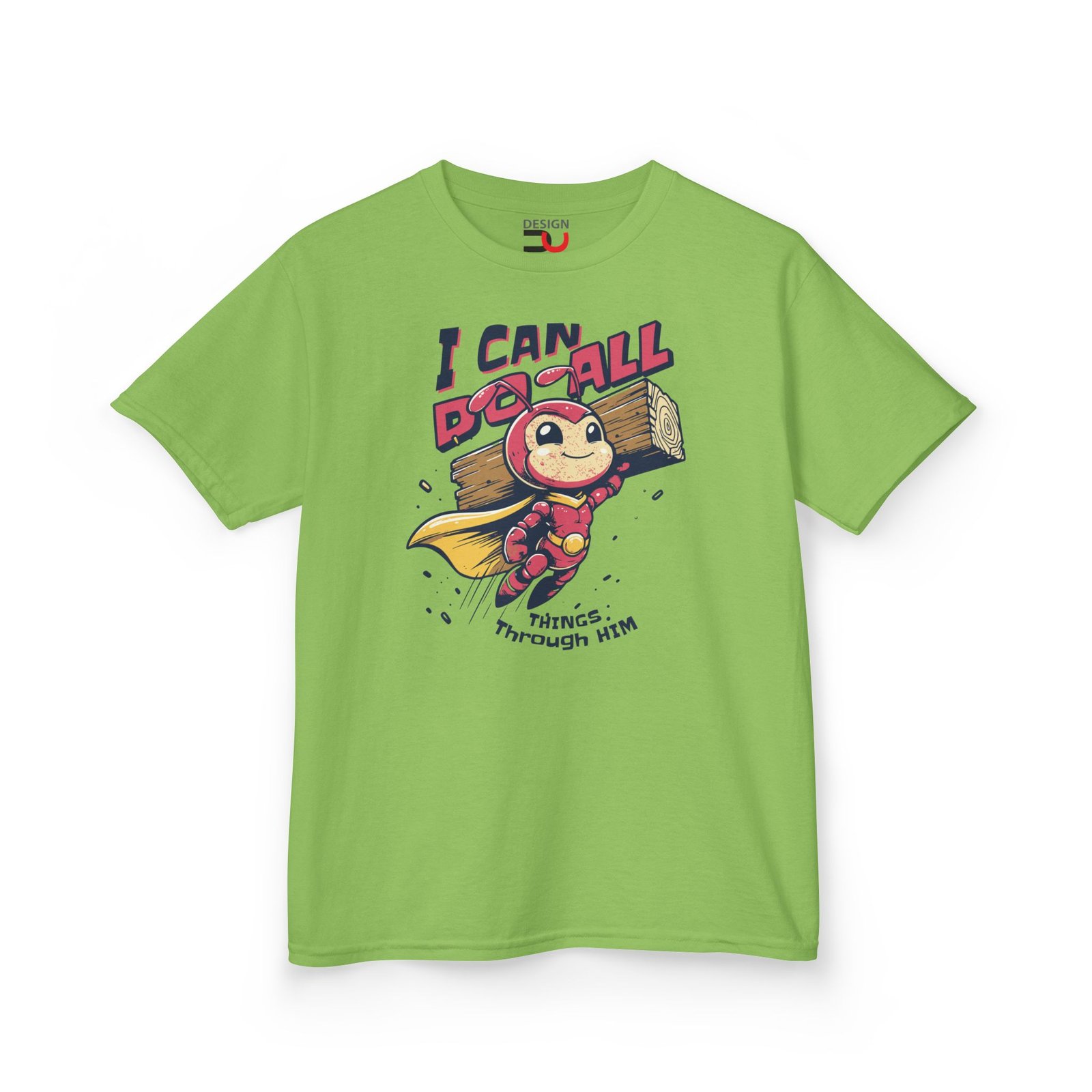 Kids Christian T-shirt I Can Do All Things Through Him Superhero ant Tee