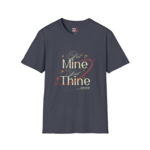 Discover the powerful reminder of surrender and devotion with the ‘Not Mine But Thine’ T-Shirt. Inspired by the enlightening verse from Luke 22:42, this inspirational Christian tee serves as a gentle yet bold way to express your faith. Whether you’re attending Sunday service, a Bible study group, or just going about your day, this shirt acts as a testament to your spiritual journey and commitment to embracing God’s plans.