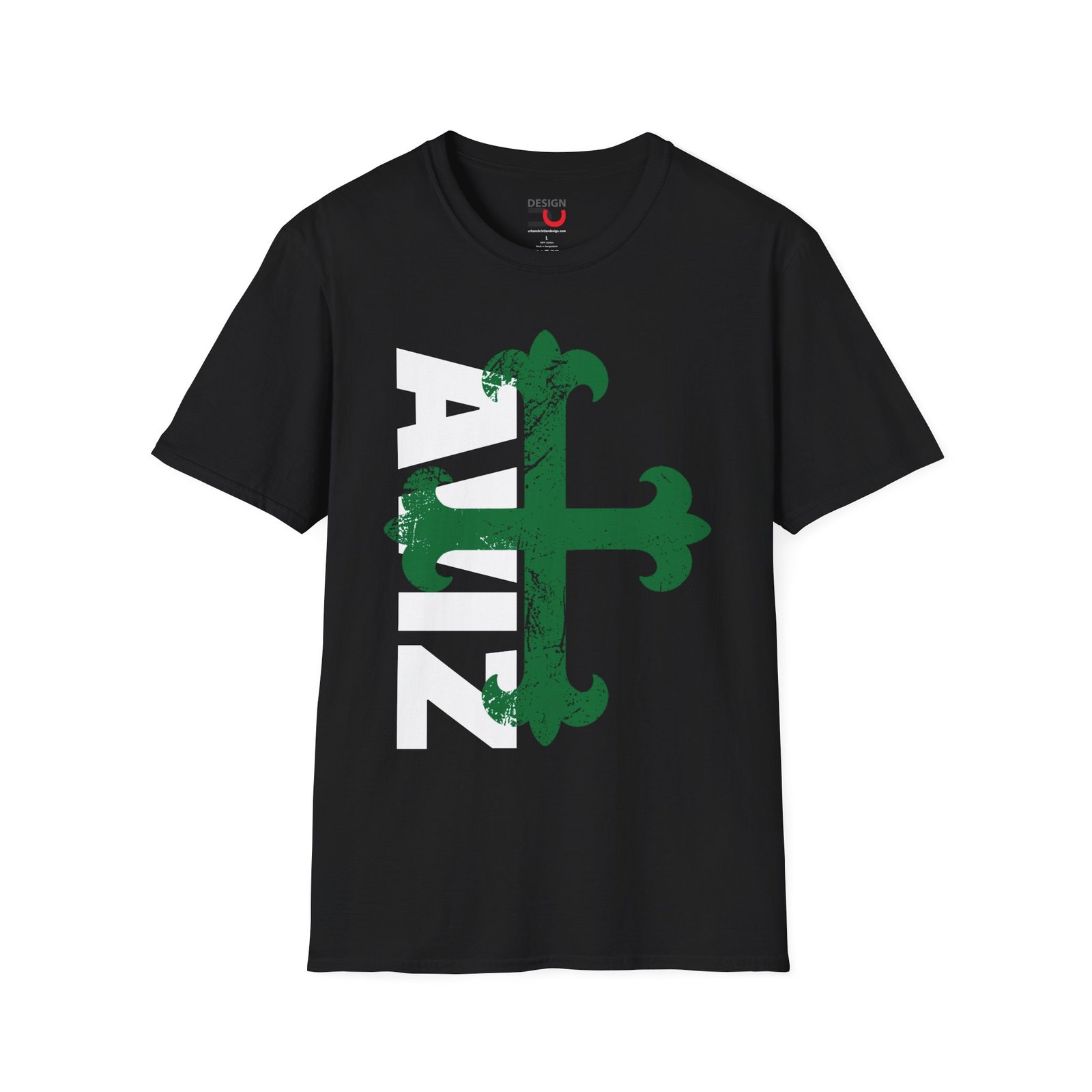 The Portuguese Aviz Cross Tee.  A cozy, durable shirt inspired by history, made from soft American cotton with a relaxed fit perfect for everyday wear.  A Portuguese order of Chivalry.  The original insignia was a green Latin cross with fleur-de-lis motifs at the ends of its arms.  We just know that it looks great on this lightweight ring-spun cotton t-shirt.  The Cross of Aviz, is similar to the Calatrava Cross and they were sometimes regarded as a branch of the Calatravan Order.  It is also, is a great looking cross on a t-shirt. Check out design out here
