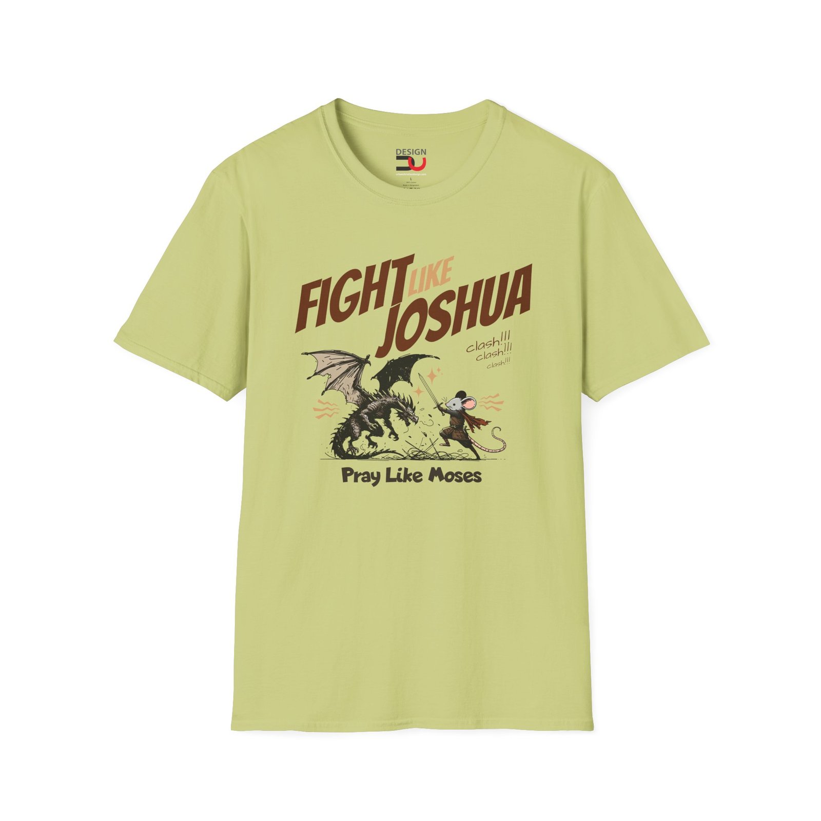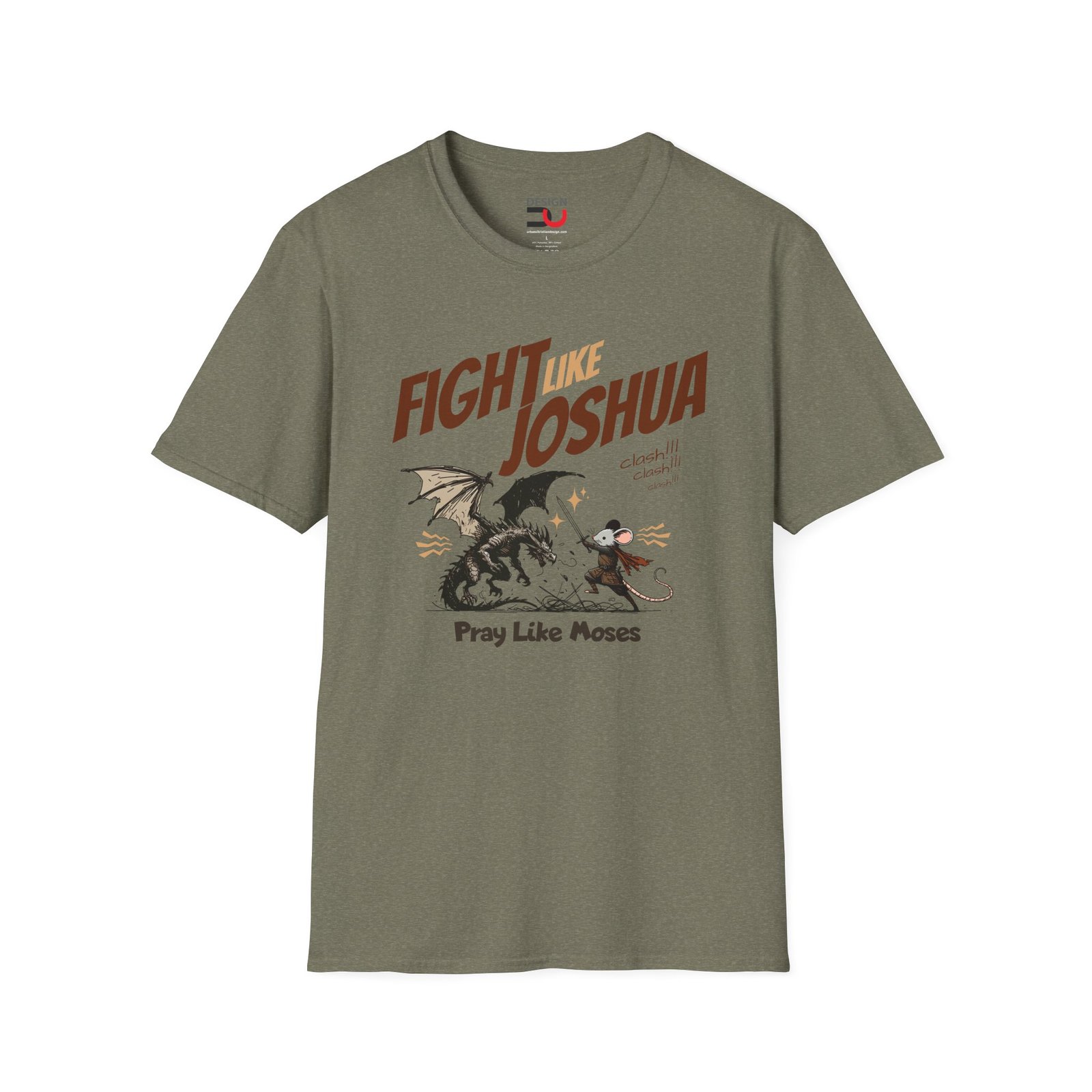 + Free ShippingA poetic blend or bravery and belief, wisdom and courage. The prayer of a righteous man is powerful and effective. When combined with faithful human effort, it reshapes history. A youth friendly design on a shirt highly rated for it’s quality and softness. The mouse fighting the dragon, while he prays like Moses and fights like Joshua. Soft, lightweight, semi-fitted, ring-spun cotton t-shirt.