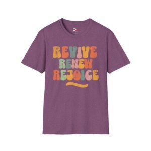 The ‘Revive Renew Rejoice Vintage Faith T-Shirt’ is the ultimate way to showcase your devotion while staying effortlessly stylish. Featuring a timeless vintage design, this shirt serves as a meaningful reminder to celebrate faith every day.