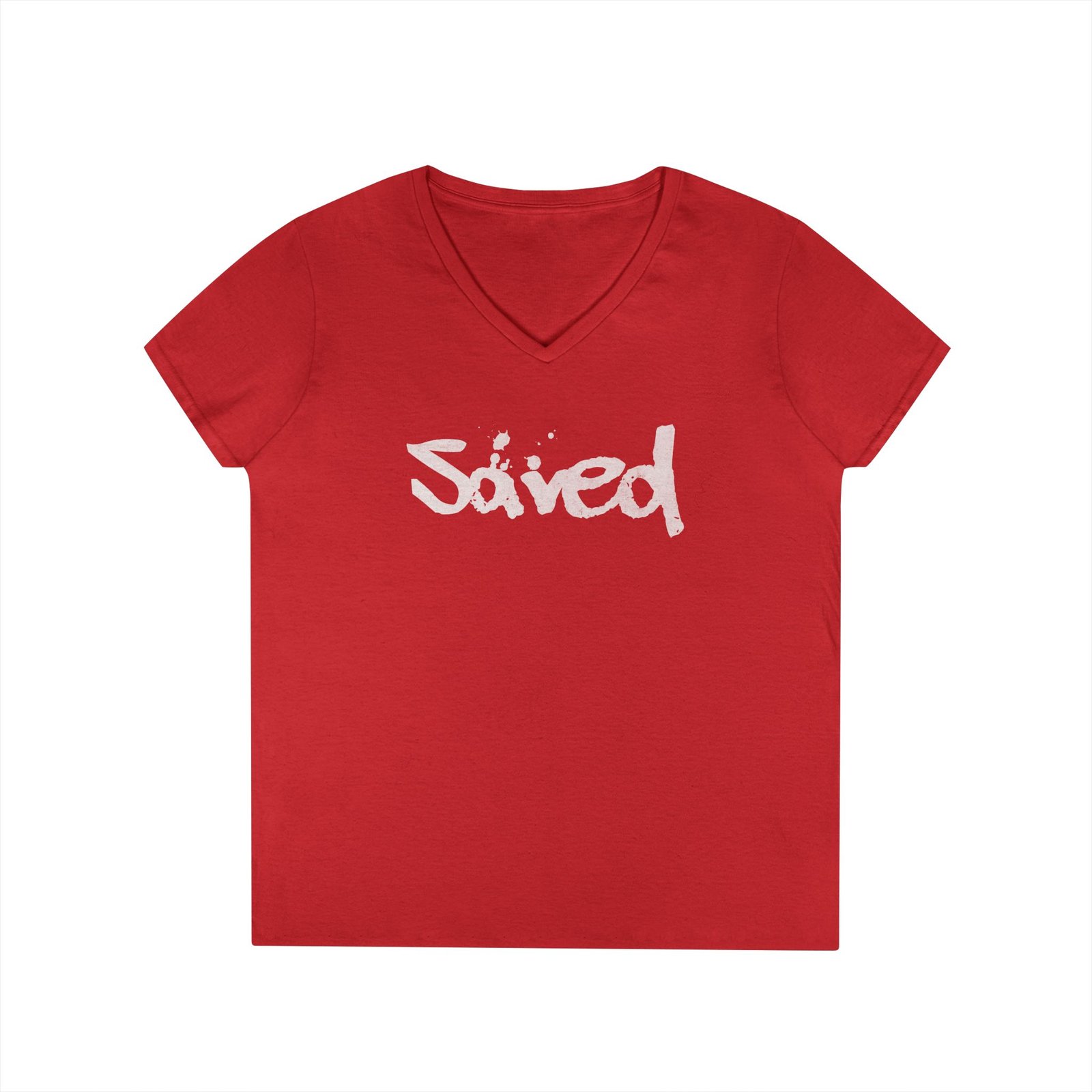 Introducing the Saved Ladies V-Neck T-Shirt, a wardrobe essential that combines comfort with effortless style. Designed with a flattering neckline and tailored fit, this t-shirt ensures you can look great while feeling at ease. Crafted from premium quality materials, the breathable fabric makes it ideal for all-day wear, whether you’re running errands, lounging at home, or catching up with friends.