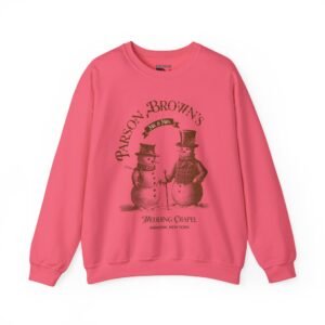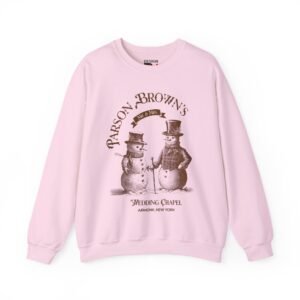 Upgrade your winter wardrobe with the Vintage Snowman ‘Parson Brown’s Wedding Chapel Sweatshirt – a perfect blend of holiday charm and classic style. Whether you’re celebrating the season, gearing up for light-hearted festivities, or simply embracing the nostalgia of wintry tales, this sweatshirt is an enchanting choice for all. Designed to bring comfort while radiating a warm, whimsical vibe, it effortlessly captures the magic of holiday traditions.